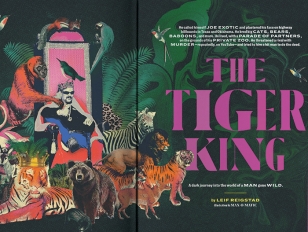 Upon seeing an Oklahoma news article about the arrest of Joe Exotic (whose real name is Joe Schreibvogel), Reigstad was instantly drawn to his story and eccentric mugshot. After his pitch to feature the story in Texas Monthly was enthusiastically approved by his editor, Reigstad was led down many “rabbit holes,” as he described the process, collecting and reporting facts about Joe Exotic’s life, visiting his closed private zoo, being among the reporters who attended his trial, and even speaking with the man himself from prison.