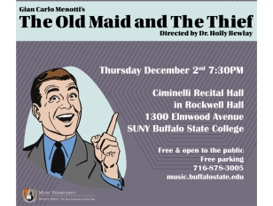 For more information about The Old Maid and the Thief, please contact the Music Department, (716) 878-6401.