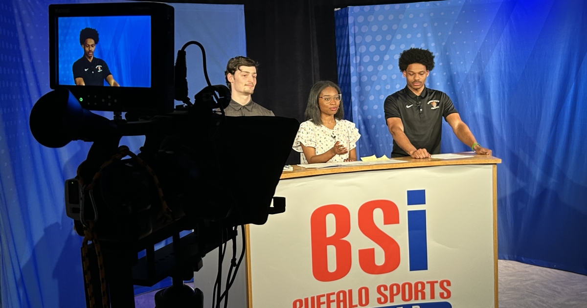 The event was livestreamed from Buffalo State’s Technology Building on the Buffalo Sports Insider (BSI) YouTube channel, where students and alumni from Buffalo State and Canisius University produce local sports content with industry professionals. The broadcast also featured an interview with professional sports broadcaster and alumnus Howard Simon, ’84.