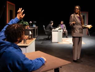 Gender is fluid in this story, allowing the audience to focus on the situation rather than a specific character. There is both a male and female teacher, and a male and female student, which seamlessly change places throughout the play. This convention engages the audience in a unique and powerful way. The play reinforces a central theme—“The obligation to maintain boundaries lies with the one in the greater position of authority”—but challenges the audience to evaluate just what those boundaries are.
