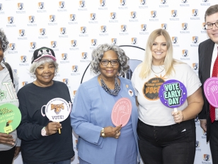This year, Buffalo State established the LoRusso Alumni and Visitor Center as an on-campus polling site for students. In collaboration with the Dr. Katherine S. Conway-Turner Civic and Community Engagement Office (CCE), Student Affairs, and the League of Women Voters Buffalo Niagara (LWVBN), the university registered 296 incoming freshman and transfer students to vote during summer 2024’s New Student Orientation sessions. A voting empowerment rally—co-sponsored by the Bengals Vote Coalition; the CCE; the Student Political Society; the Political Science, Public Administration, and Planning Department; and the LWVBN—was held on October 24.