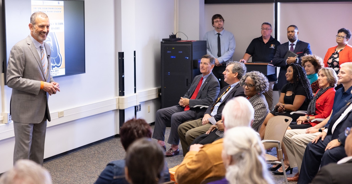 Drew Kahn, SUNY Distinguished Service Professor and founding director of Buffalo State’s Anne Frank Project, explained the Kinyarwanda greeting “Muraho” to those assembled in the newly renamed Donn Youngstrom Global Learning Lab at Buffalo State University on October 5. “Muraho,” he said, connotes “We celebrate your presence.” It extends far beyond the traditional American greeting of “hello.”