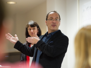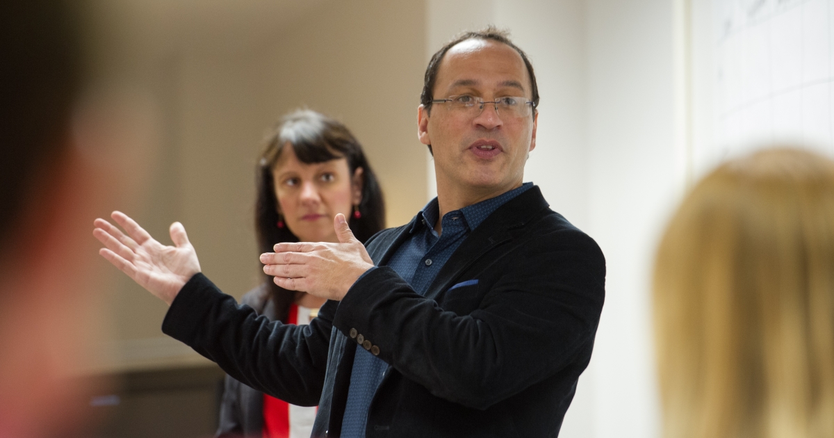 Pictured: John Cabra teaching in Buffalo State's 2017 Fostering Innovation in Teaching with Technology (FITT) Academy. Photo by Bruce Fox, campus photographer.