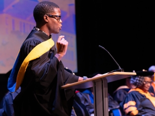 Edreys Wajed, ’97, an accomplished multidisciplinary educator and artist, delivered an inspiring speech to the incoming Class of 2027 during the university’s annual First-Year Convocation last month.