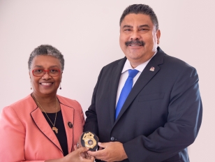 Top photo: President Katherine Conway-Turner with UPD Chief Stephen Mayoral.