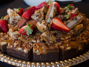 Platter of gooey caramel brownies