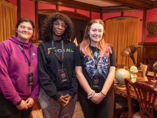 Three female students on film set of The Wrong Road